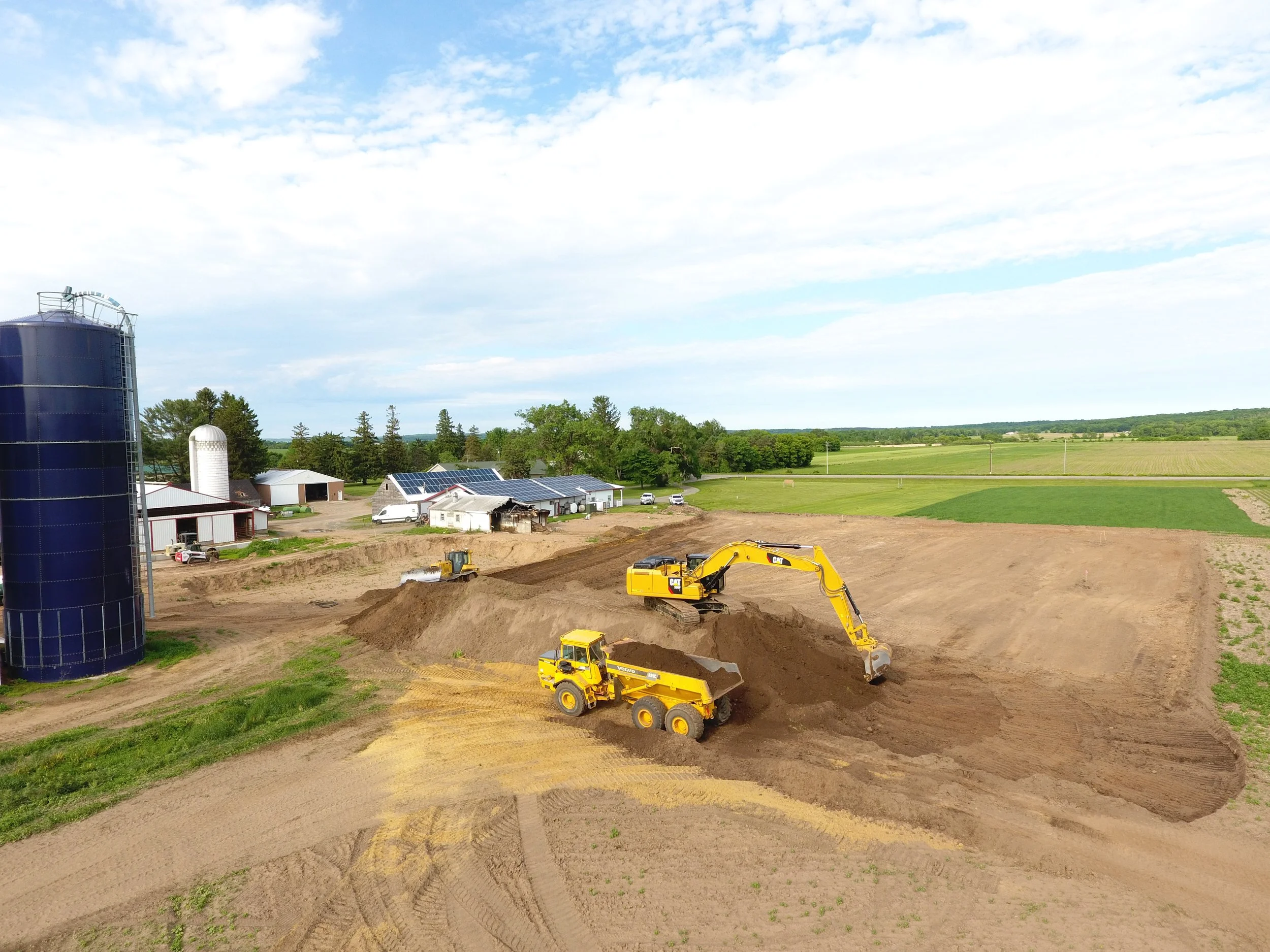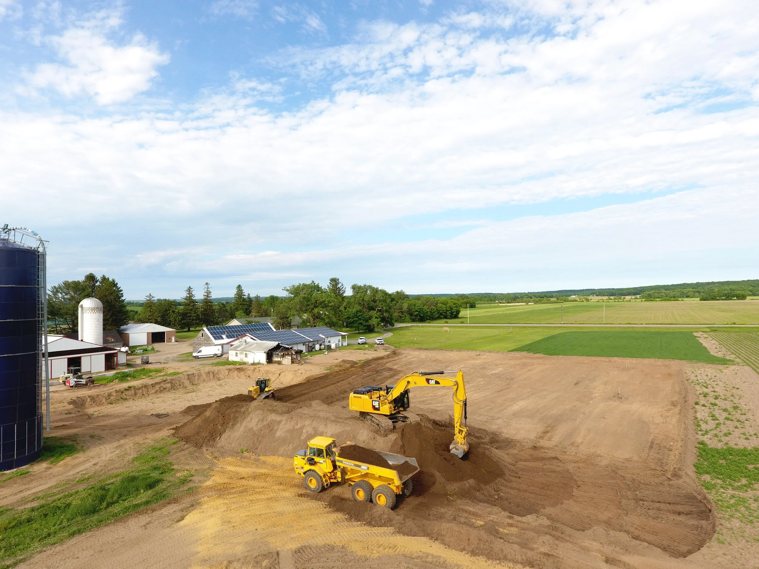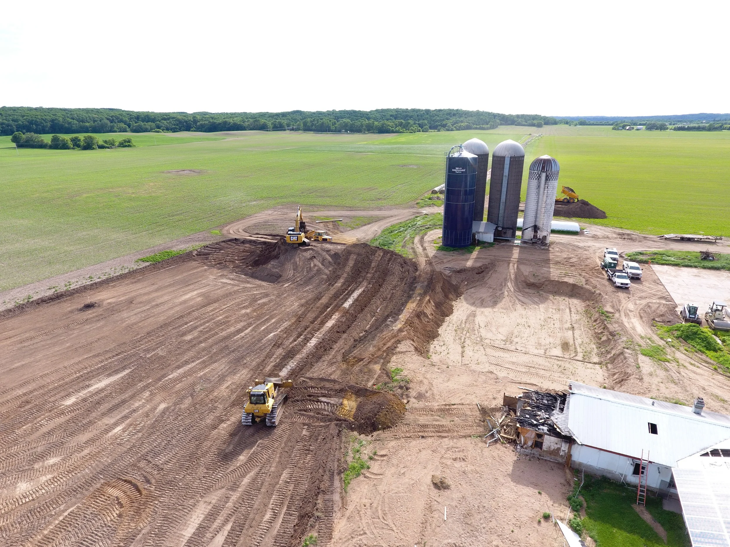 Once the site was cleared, we moved forward with the next phase: preparing the land for rebuilding. Our crews excavated and backfilled the area for a new 46' x 272' free stall barn, along with six manure tanks. We also installed water lines for livestock waterers, completed final grading around the building’s perimeter, and delivered over 550 tons of gravel to create solid, accessible entrances.